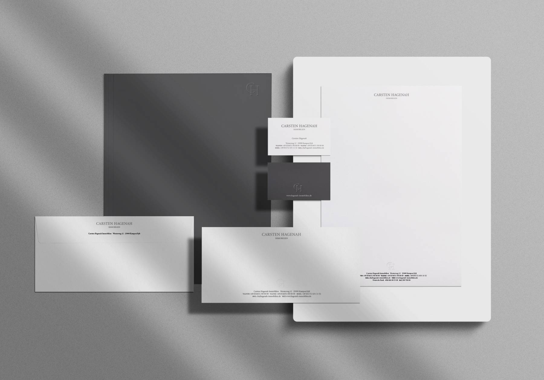 Auf Grund der hoch angesiedelten Zielgruppe entwickelten wir ein sehr klassisch gehaltenes, zeitloses Corporate Design, ohne jeglichen modischen Anflug, einmal abgesehen von den stilprägenden Grau- und Schwarztönen.